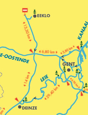 gaan richting Merelbeke. Voor De sluis van Merelbeke gaat je aan BB zijde door